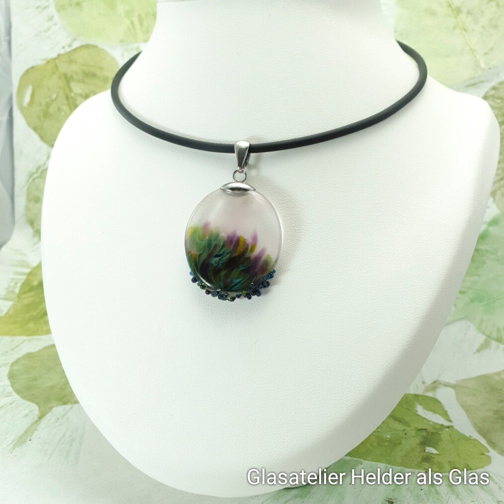 Glashanger van transparant mistig wit glas met groen, paars en turquoise - Amazone