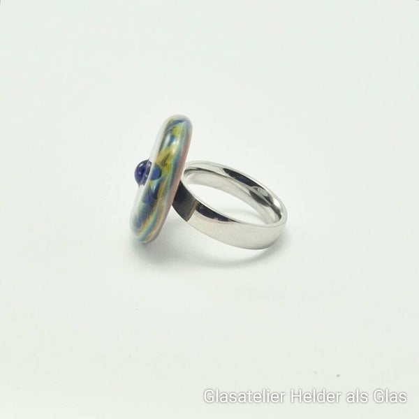 Glastop L van blauw/groen/paars glas met stip in reliëf