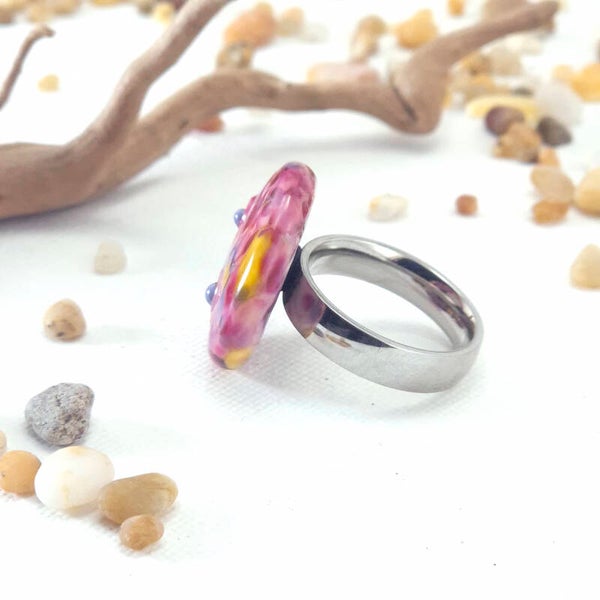 Glastop L van roze glas met donkerroze/geel/zachtlila en reliëf