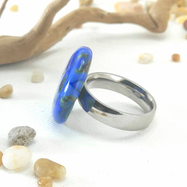 Glastop L van blauw glas met donkerblauw/groen/bruin