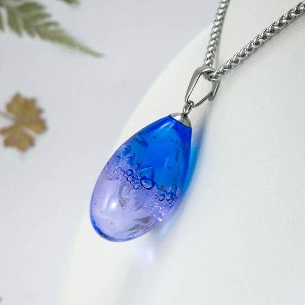 Glashanger van transparant blauw/zacht lila glas met 1 grote luchtbel en kleine luchtbelletjes
