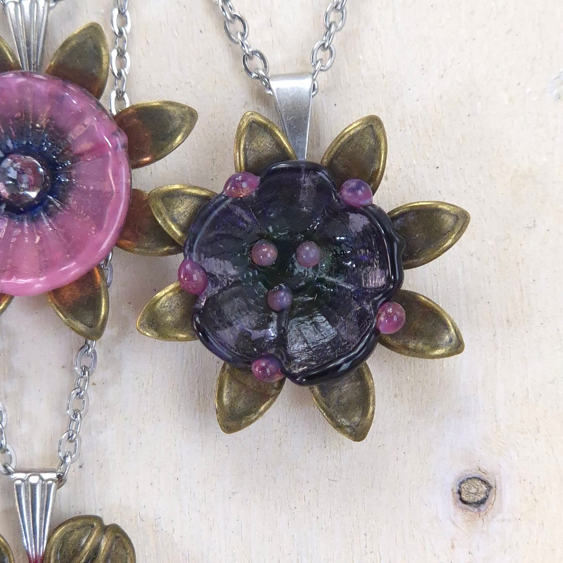 Kleine bloem-hangertjes van glas - meerdere kleuren