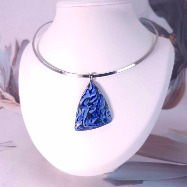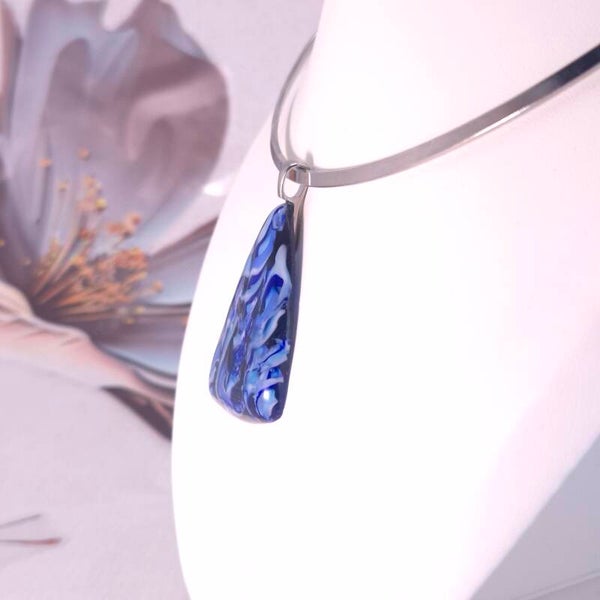 Driehoekige glashanger van transparant glas met lichtblauw-donkerblauw-wit.